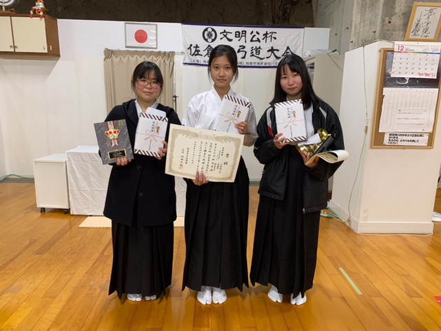 12月24日午後に佐倉市民体育館内弓道場で実施された、文明公杯高校生の部で見事に入賞された皆さんです。
